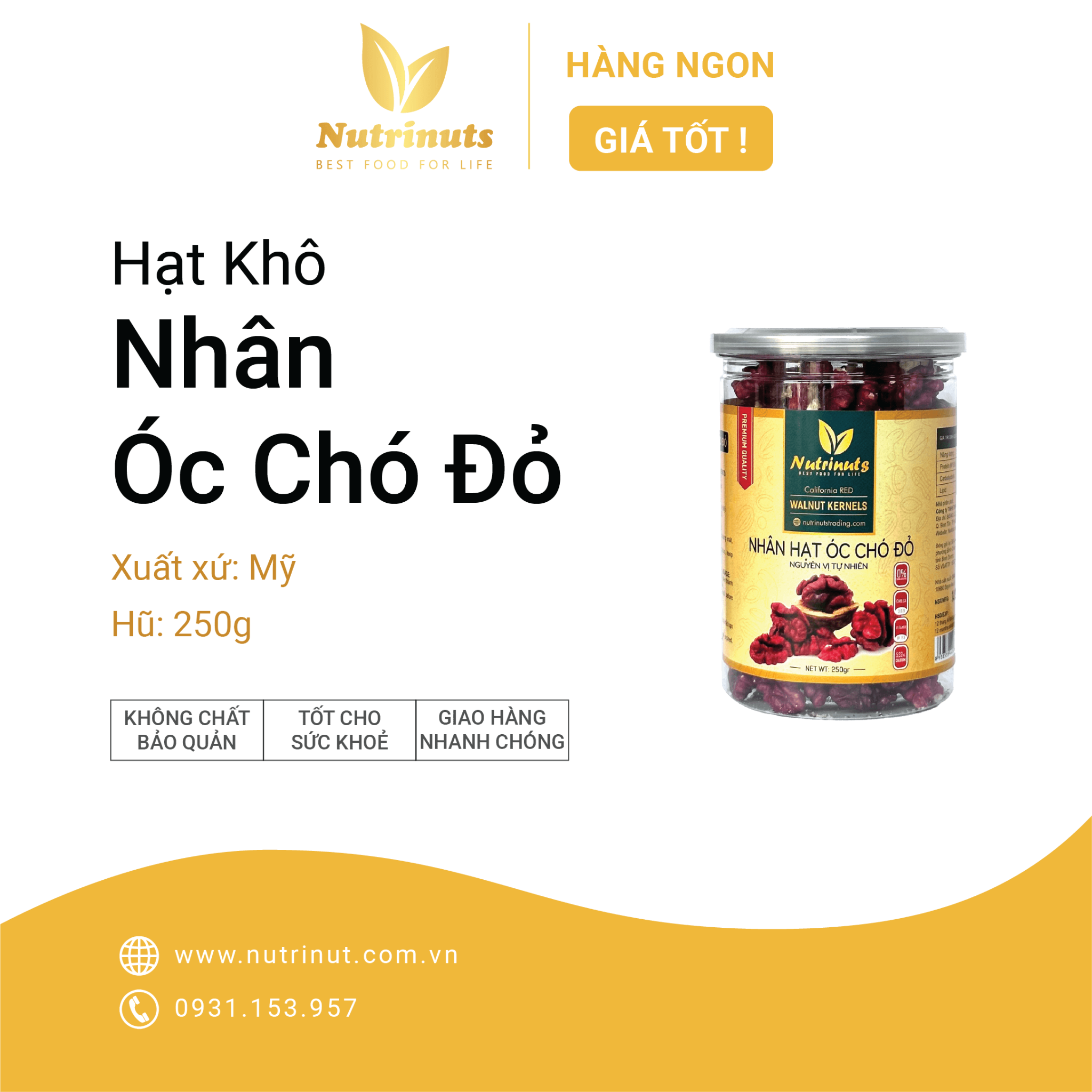 🍁 Nguyên liệu : 100% nhân quả óc chó đỏ nhập khẩu trực tiếp từ Mỹ