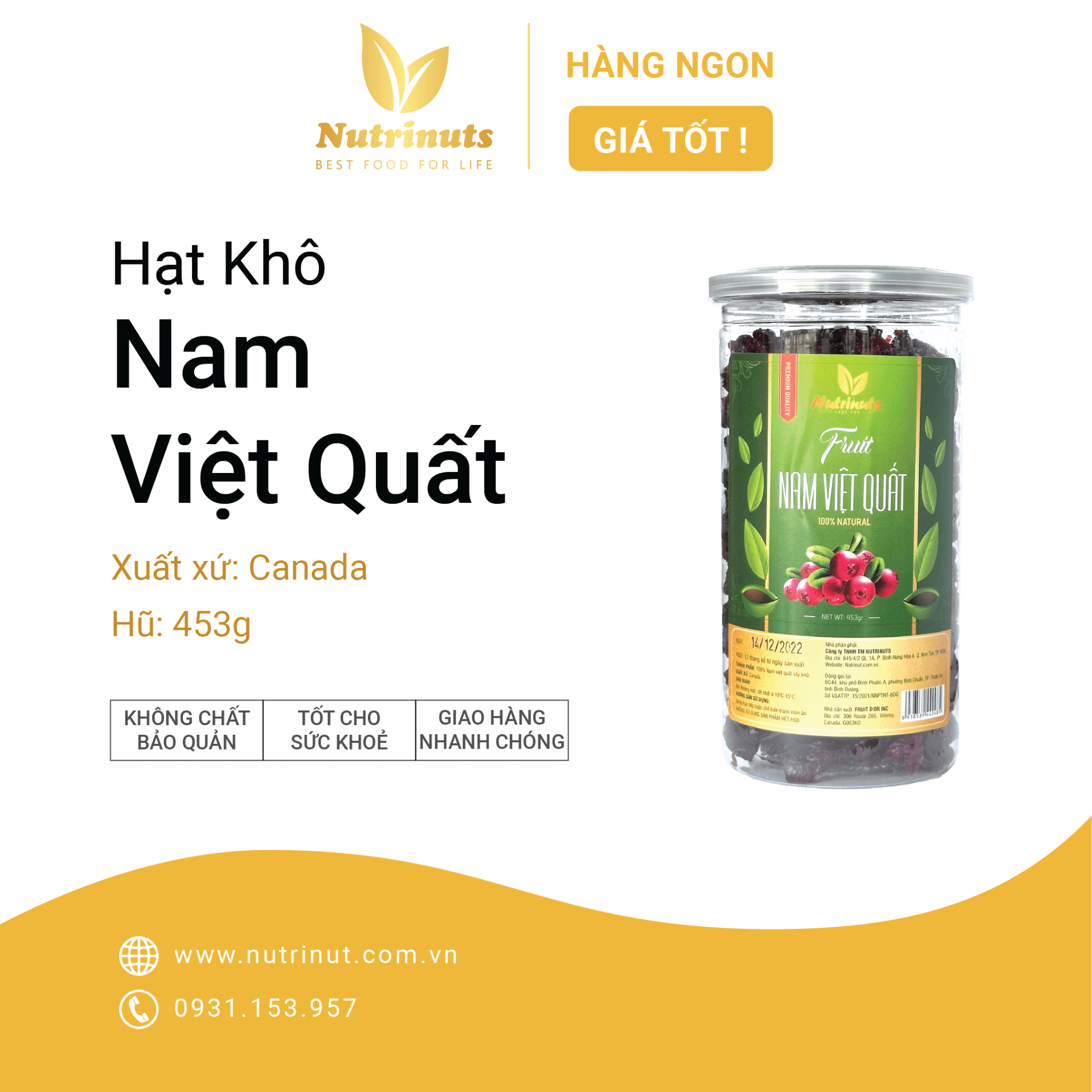 ✅ Nam Việt Quất Mỹ sấy khô hữu cơ thương hiệu Nutrinut